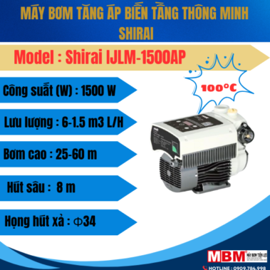 Bơm tăng áp biến tần Shirai 1500W 6m3/h -IJLm-1500AP