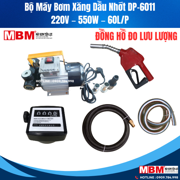Bộ Bơm xăng dầu nhớt DP-6011-220V-550W-60L/P (Có đồng hồ lưu lượng)